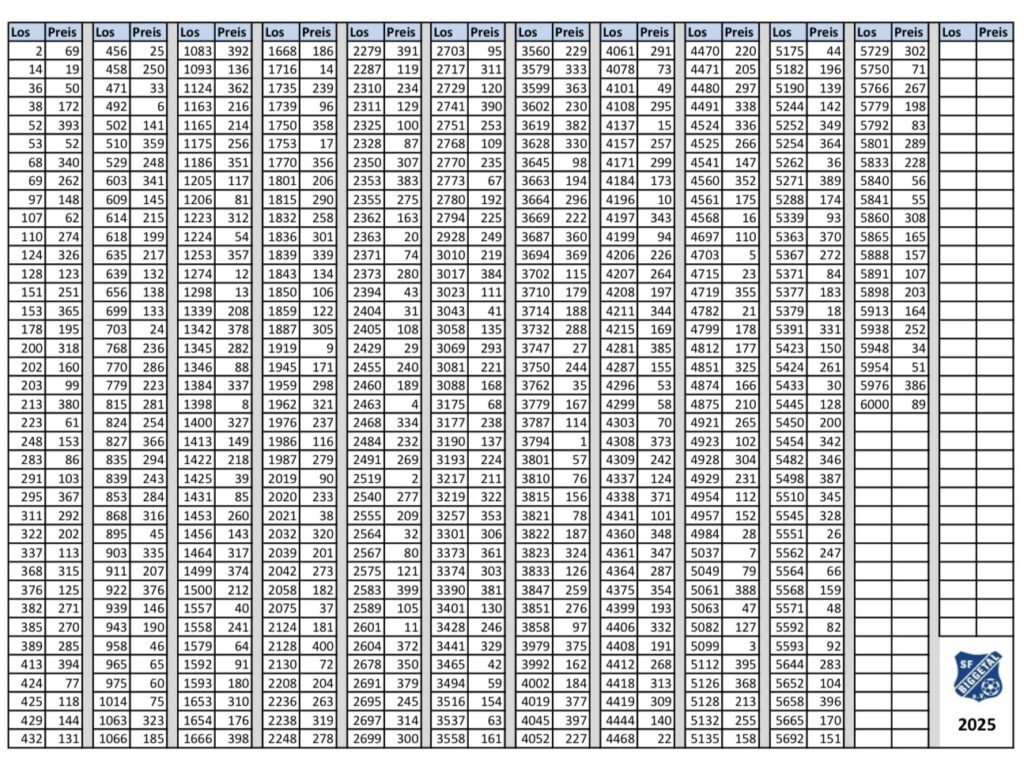 Die Preisausgabe erfolgt am 02.&07.01.2025 von 18-20 Uhr auf dem Sportplatz in Sondern. Eine Gewinnerübersicht wird Ende des Jahres wieder hier veröffentlicht.
